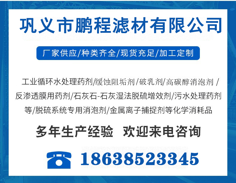 阻垢劑 清洗劑 還原劑 剝離劑 消泡劑——水處理劑廠家 鵬程濾材1月17號(hào)正式放假