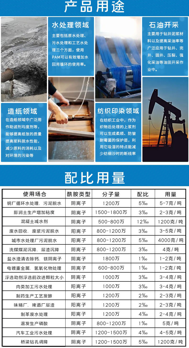 陽(yáng)離子聚丙烯酰胺通過(guò)交聯(lián)吸附的網(wǎng)狀結(jié)構(gòu),作為了一類重要的絮凝劑  增稠劑  減阻劑  泥漿處理劑 表面活性劑 土壤改良劑,水土保濕劑 造紙 印染紡織增強(qiáng)劑等;在石油開(kāi)采  水處理 紡織造紙 選礦 醫(yī)藥等行業(yè)中廣泛用到。所以被稱之為 百業(yè)助劑。