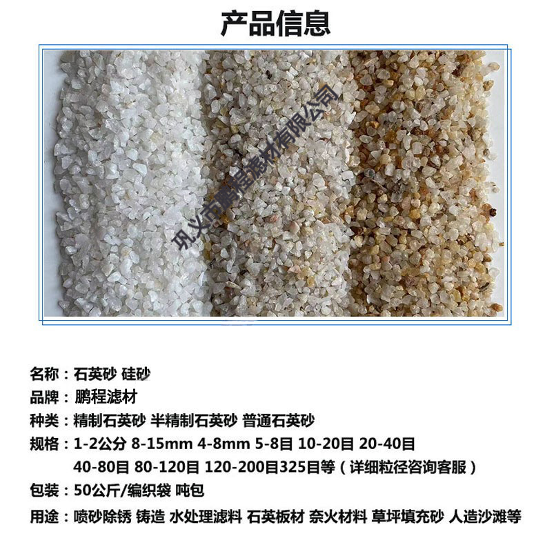 石英砂濾料——有普通石英砂 酸性石英砂 機(jī)制石英砂 天然石英砂 也就是天然海砂,精致石英砂。使用范圍廣泛。