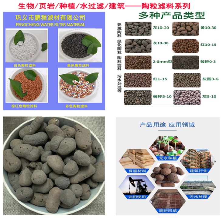 陶粒多由黏土或頁巖成型經(jīng)高溫處理所得,表面粗,內(nèi)部多孔,有較大的比表面織,有利于生物的附著生長制陶粒的原村料范圍不斷擴大,粉煤灰、底泥、污泥高爐渣、垃圾等各種固體廢棄物用于燒制陶粒作為濕地填料,富含鈣、鐵、鋁等元素;能與污水中的磷酸鹽形成不溶性沉底,有利于氮確的去除;