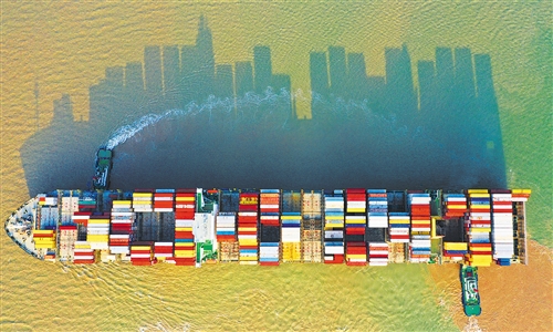 2019年,“中國號”巨輪在高質(zhì)量航道穩(wěn)健行進,前三季度國內(nèi)生產(chǎn)總值增長6.2%,在全球經(jīng)濟總量1萬億美元以上的經(jīng)濟體中增速最快。圖為一艘滿載集裝箱的貨輪緩緩駛離上海洋山深水港碼頭。計海新攝(中經(jīng)視覺)