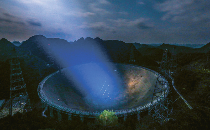 夜色中的“中國(guó)天眼”全景(2020年1月8日攝)。 新華社記者 歐東衢/攝
