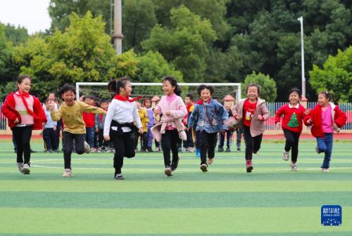 11月4日,在湖南省永州市新田縣雙碧小學(xué),孩子們?cè)谶\(yùn)動(dòng)場(chǎng)上做游戲。今年秋季學(xué)期開(kāi)學(xué)以來(lái),各地積極落實(shí)“雙減”政策,利用課后服務(wù)時(shí)間開(kāi)展內(nèi)容豐富、形式多樣的課外活動(dòng),促進(jìn)學(xué)生全面發(fā)展。新華社發(fā)(劉貴雄攝)