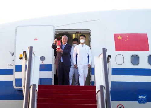 10月20日,在北京首都機(jī)場(chǎng),北京冬奧組委特別代表、北京冬奧組委副主席于再清(左)手持火種燈走出艙門(mén)。隨著北京冬奧組委赴希臘代表團(tuán)抵達(dá)首都機(jī)場(chǎng),北京冬奧會(huì)火種順利抵達(dá)北京。新華社記者 張晨霖 攝