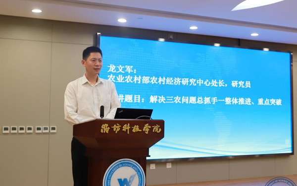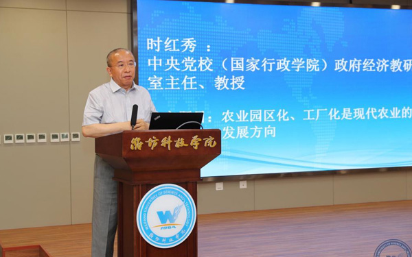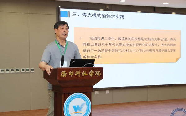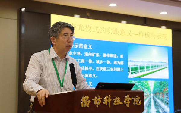 壽光市人大常委會(huì)副主任、濰坊科技學(xué)院校長(zhǎng)李昌武在致辭中表示,濰坊市委副書記、壽光市委書記林紅玉同志在全市三級(jí)干部會(huì)議上,對(duì)我校提出全面提升辦學(xué)水平,提高社會(huì)服務(wù)能力,加快推進(jìn)碩士點(diǎn)培育建設(shè)的要求。為落實(shí)林書記講話要求,加強(qiáng)區(qū)域經(jīng)濟(jì)和“壽光模式”研究,壽光市人民政府與中國(guó)經(jīng)濟(jì)體制改革研究會(huì)等聯(lián)合成立的“新時(shí)代鄉(xiāng)村振興與區(qū)域經(jīng)濟(jì)發(fā)展研究院”掛靠學(xué)院,引進(jìn)了大批高層次人才,形成了一批富有創(chuàng)造性、建設(shè)性的學(xué)術(shù)研究成果和決策咨詢意見,“壽光模式”研究成果在國(guó)家發(fā)改委《改革內(nèi)參》刊發(fā)。成立了國(guó)家二級(jí)學(xué)會(huì)農(nóng)學(xué)思想與《齊民要術(shù)》研究會(huì),連續(xù)成功舉辦了10屆中華農(nóng)圣文化國(guó)際研討會(huì),師生原創(chuàng)52集動(dòng)畫片《農(nóng)圣賈思勰》在中央電視臺(tái)和山東衛(wèi)視播出。學(xué)校組建了博士、教授農(nóng)學(xué)科研服務(wù)團(tuán)隊(duì),成立了蔬菜產(chǎn)業(yè)學(xué)院、農(nóng)業(yè)技術(shù)培訓(xùn)基地,自主研發(fā)蔬菜品種28個(gè),在全國(guó)7個(gè)省區(qū)建立了育種基地,開發(fā)運(yùn)營(yíng)了壽光市農(nóng)業(yè)智慧監(jiān)管服務(wù)公共平臺(tái),打造了覆蓋設(shè)施農(nóng)業(yè)全產(chǎn)業(yè)鏈的專業(yè)服務(wù)體系,為創(chuàng)新提升“壽光模式”和鄉(xiāng)村振興戰(zhàn)略的實(shí)施提供了有力支撐。