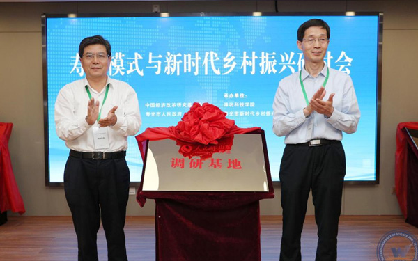 5月25日-26日,由中國(guó)經(jīng)濟(jì)體制改革研究會(huì)、中國(guó)經(jīng)濟(jì)改革研究基金會(huì)、壽光市委市政府聯(lián)合主辦的“壽光模式與新時(shí)代鄉(xiāng)村振興”研討會(huì)在壽光市農(nóng)圣文化學(xué)術(shù)交流中心舉行。與會(huì)專家聽取了“壽光模式”研究課題組成果匯報(bào),開展了熱烈研討,并到三元朱村、菜博會(huì)、全國(guó)蔬菜質(zhì)量標(biāo)準(zhǔn)中心等地進(jìn)行了實(shí)地調(diào)研。新時(shí)代鄉(xiāng)村振興與區(qū)域經(jīng)濟(jì)發(fā)展研究院、中國(guó)經(jīng)濟(jì)體制改革研究會(huì)博士后科研工作站壽光分站、人民網(wǎng)山東頻道調(diào)研基地”同期揭牌。