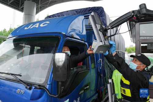 4月13日,在合肥百大周谷堆大興農(nóng)產(chǎn)品物流園,司機在智能化門禁系統(tǒng)上掃碼進入。該園建立集測溫、核驗安康碼、數(shù)據(jù)收集等功能的智能化門禁系統(tǒng),進場駕乘人員不用下車即可快速核驗,實現(xiàn)防疫測溫智能化、人車追溯數(shù)據(jù)化。新華社記者 杜宇 攝