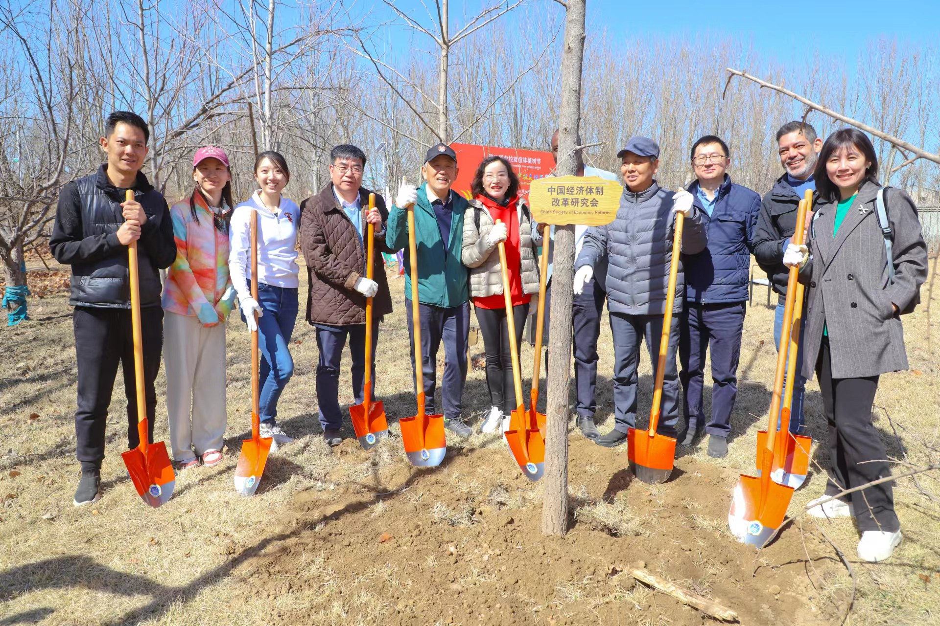來自烏拉圭、阿根延、秘魯、古巴、多米尼加、厄瓜多爾、哥斯達黎加、委內(nèi)瑞拉、蘇里南、薩爾瓦多、巴哈馬、安巴、海地等14個拉美國家的駐華使節(jié)和貿(mào)易代表,和中國經(jīng)濟體制改革研究會、絲綢之路城市聯(lián)盟、央視網(wǎng)、CGTN、綠色中國、北京中創(chuàng)碳投、北京絲促會、3060俱樂部等機構的代表們,一起揮鍬鏟土、提水澆灌,種下銀杏、紅楓、玉蘭、海棠等多種樹苗,為小樹苗掛牌,一起合影留念。