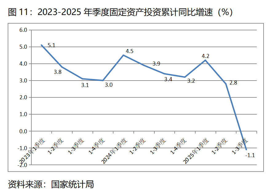圖11:2023-2025年季度固定資產(chǎn)投資累計(jì)同比增速(%)
