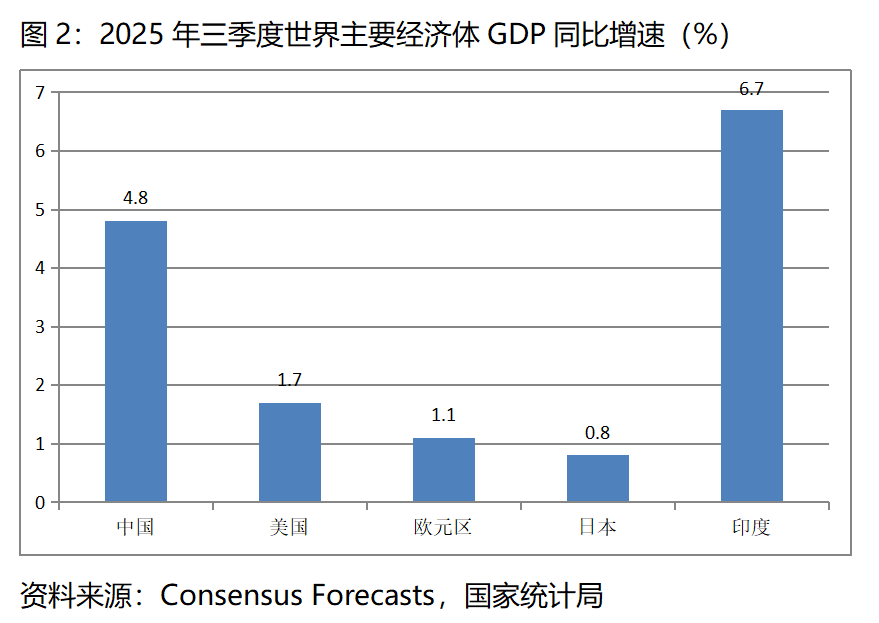 圖2:2025年三季度世界主要經(jīng)濟(jì)體GDP同比增速(%)