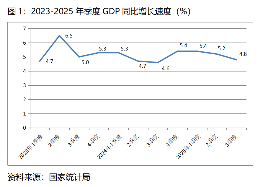 圖1:2023-2025年季度GDP同比增長(zhǎng)速度(%)