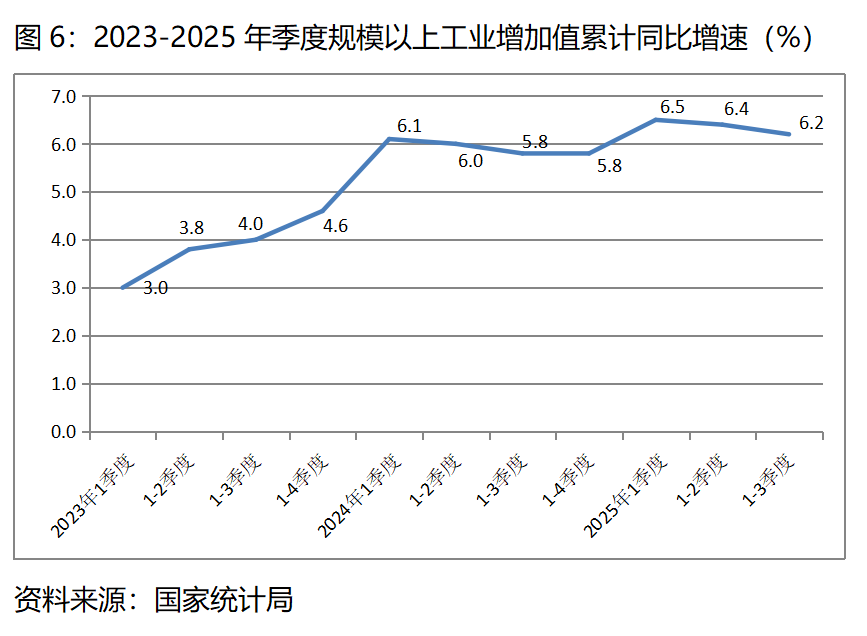 圖6:2023-2025年季度規(guī)模以上工業(yè)增加值累計(jì)同比增速(%)