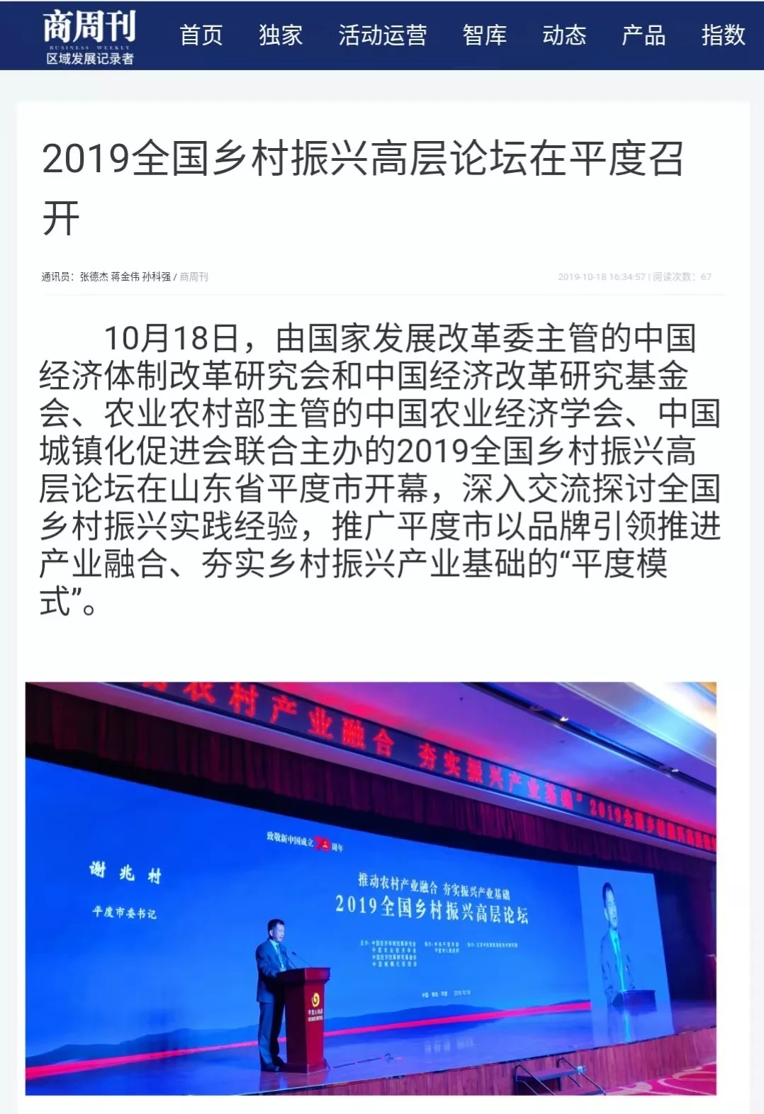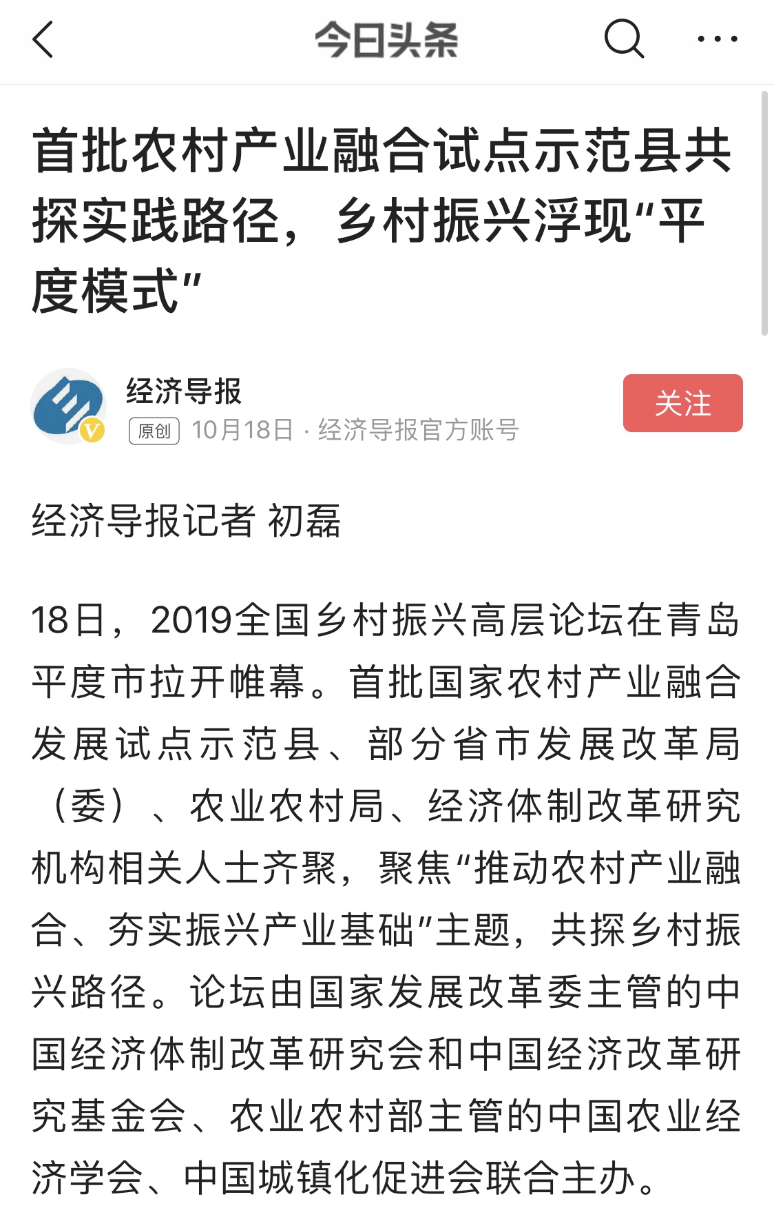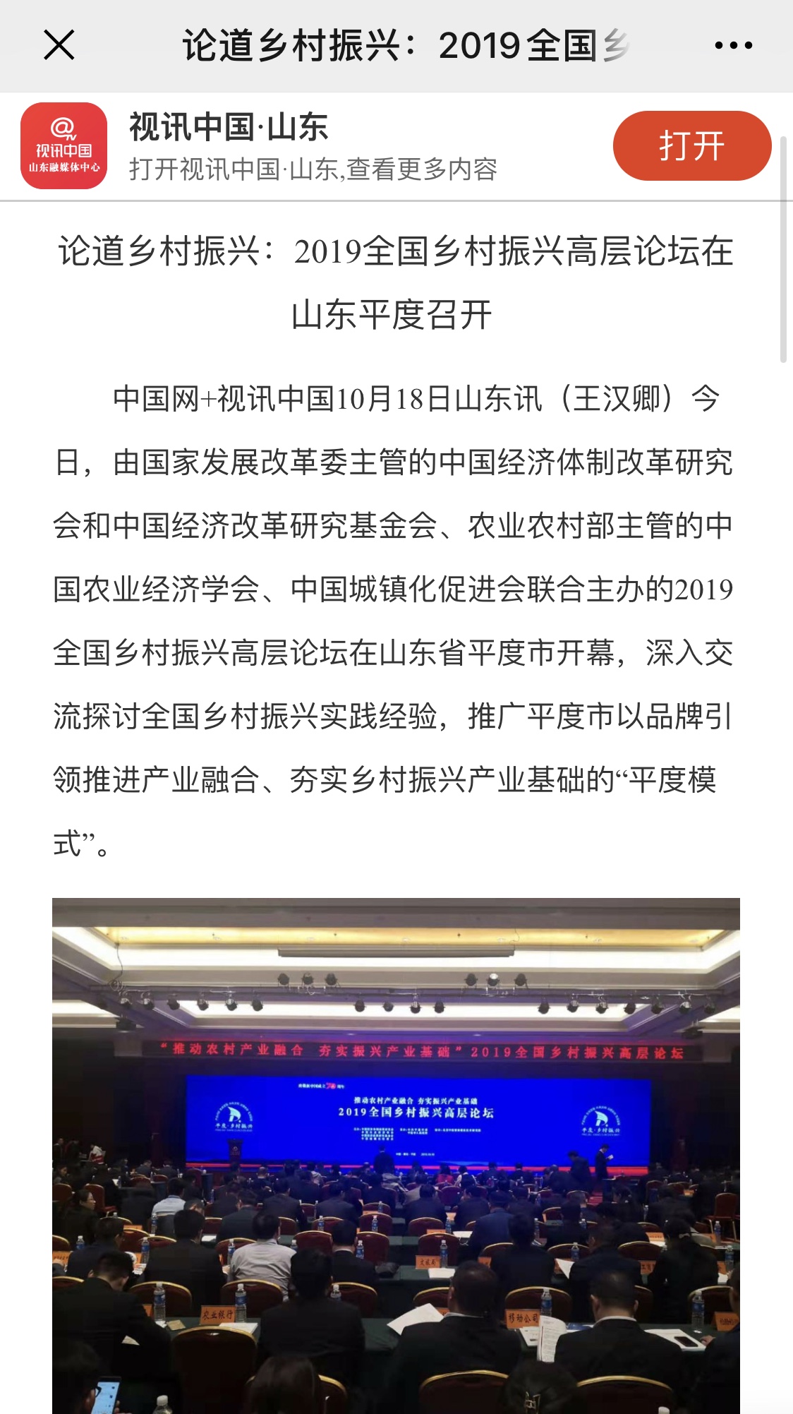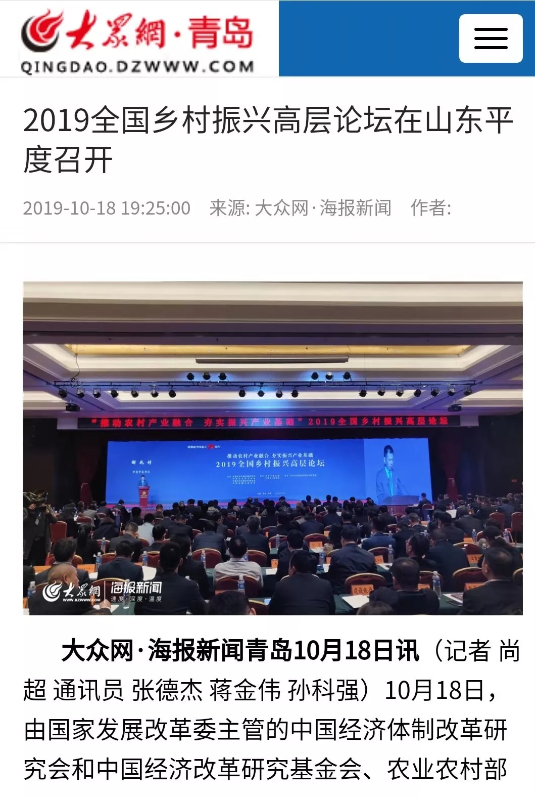 眾媒聚焦丨2019全國鄉(xiāng)村振興高層論壇在平度召開,探討推廣"平度模式"