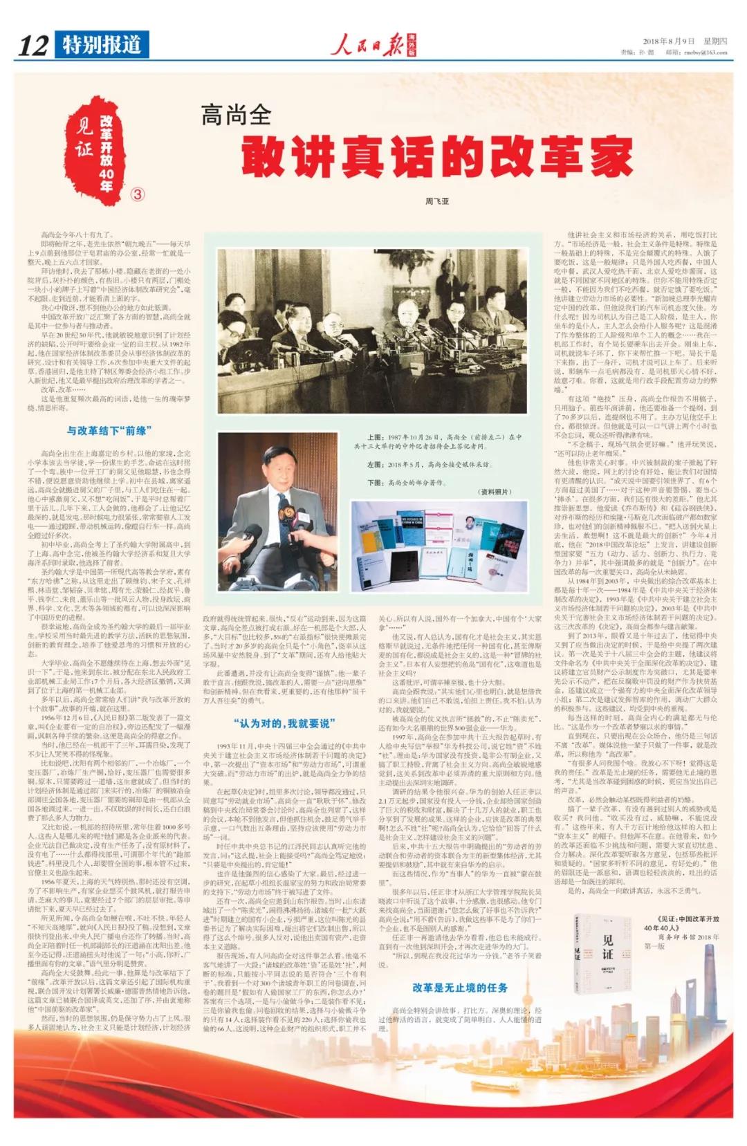 是的,高尚全一向敢講真話,永遠不乏勇氣。